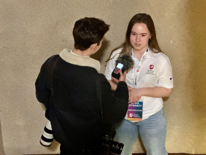 Dużym zainteresowaniem uczniów goszczących w murach uczelni cieszyły się także zajęcia związane z kierunkiem dziennikarstwo i kultura mediów. Pracownia radiowa, w której Aleksandra Mieczyńska zaprosiła uczniów przed mikrofon, to było, w ich opinii, duże przeżycie. Maturzyści mieli za zadanie, niczym radiowy speaker, zapowiedzieć prognozę pogody na najbliższe dni. Chociaż początkowo zadanie wydawało się niełatwe – wszyscy chętni „dali radę".