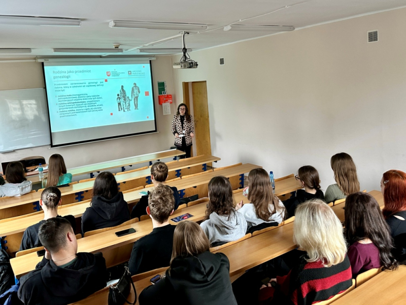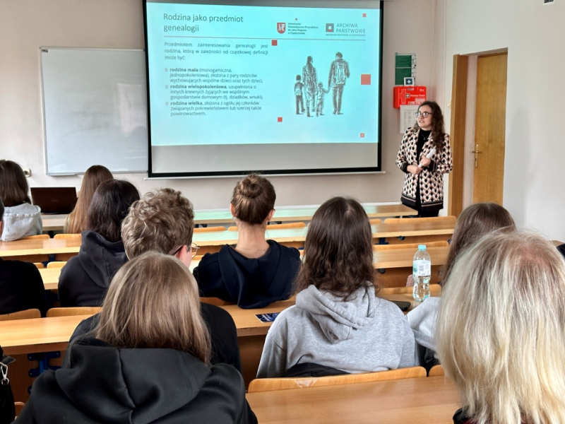 Zajęcia promujące kierunek historia na UJD, które poprowadziła dr Alicja Adamus-Kowalik dotyczyły tego, gdzie i w jaki sposób szukać informacji o swoich przodkach.